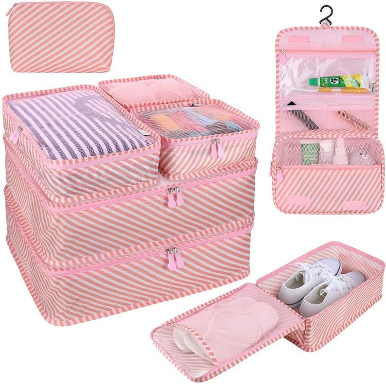カスタム印刷多機能ストライプ スーツケース オーガナイザー荷物防水トラベル キューブ パッキング セット