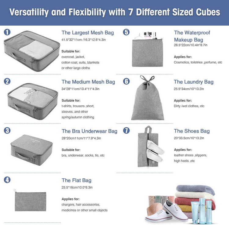 7 個セット旅行荷物オーガナイザーパッキングキューブ大型軽量防水収納袋旅行服靴バッグ