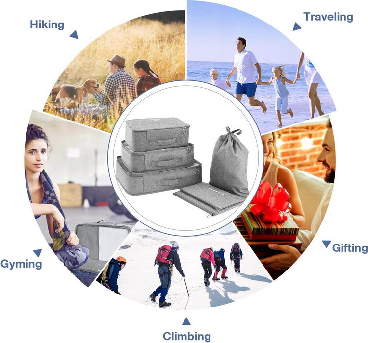 旅行カスタムロゴ防水6セット3サイズ圧縮パッキングキューブ収納荷物オーガナイザー旅行用