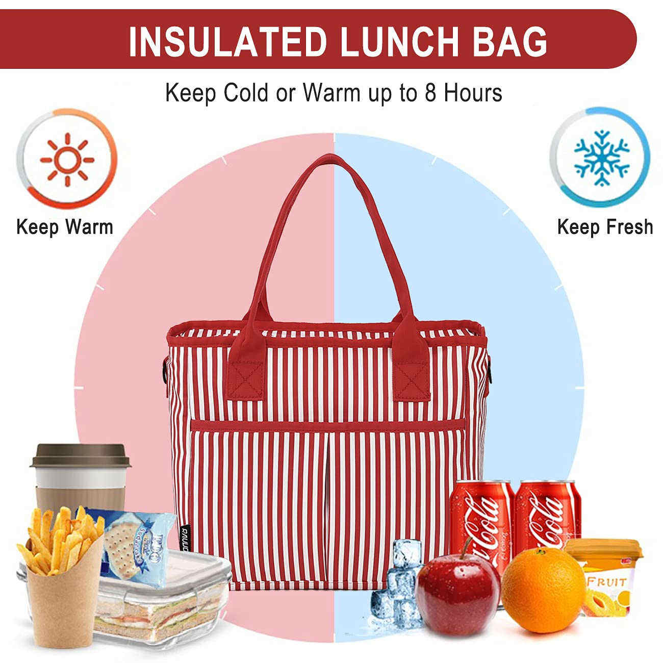 ホームページ / 製品 / クーラーバッグ&ランチバッグ / ランチバッグ / ショルダーストラップ付きの女性のための卸売大型断熱漏れ防止ランチボックス再利用可能なランチトートクーラーバッグ