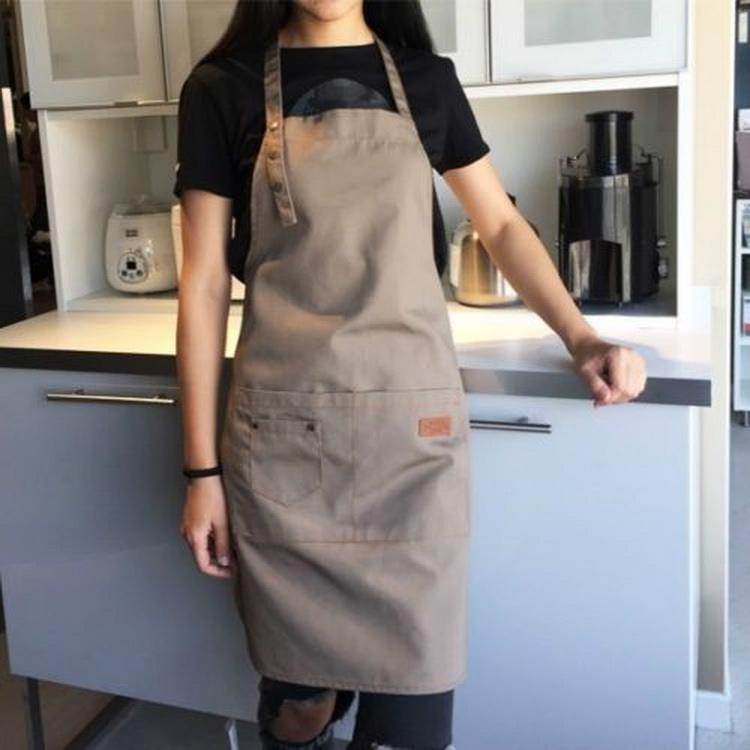 スタイリッシュな頑丈なデニム エプロン カスタム ロゴ ジーンズ エプロン ポケット付き