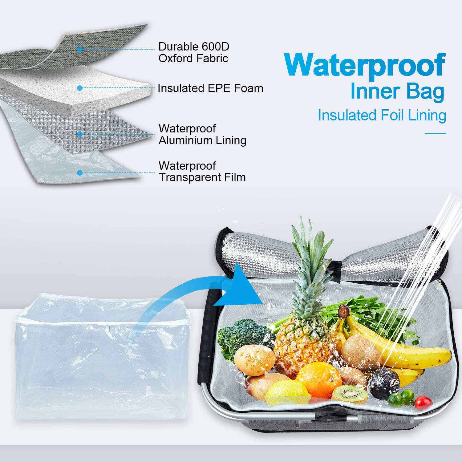 300D/600D/1680D 素材 + EPE フォーム +PEVA ライニング/アルミホイル