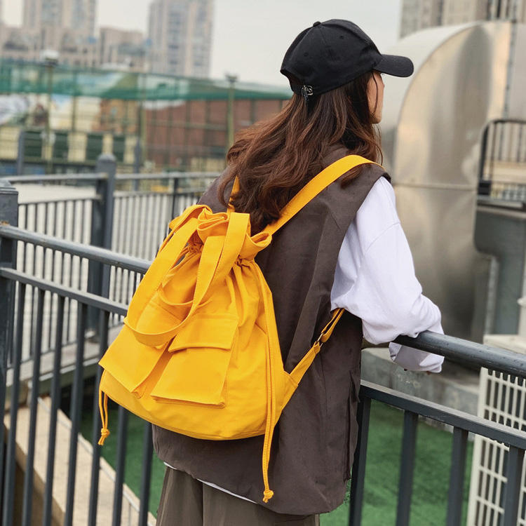 | 多目的巾着キャンバス バックパック ファッション コットン スリング ショルダー バッグ ガール ティーンエイジャー ビッグ トートバッグ | ||