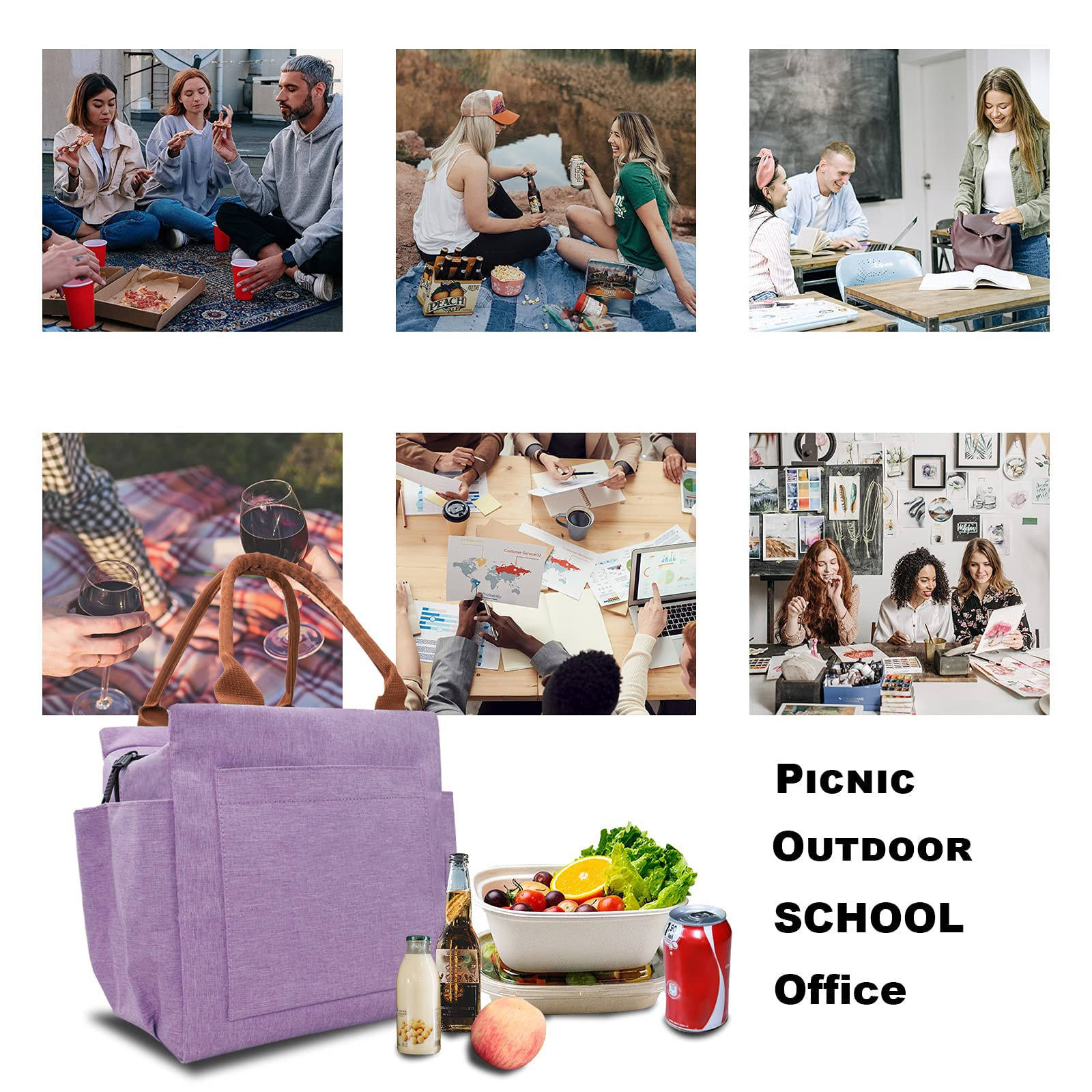 ホームページ / 製品 / クーラーバッグ&ランチバッグ / ランチバッグ / 大型再利用可能な女性用断熱サーマルクーラーランチボックスリークプルーフクーラートートバッグワークオフィス用