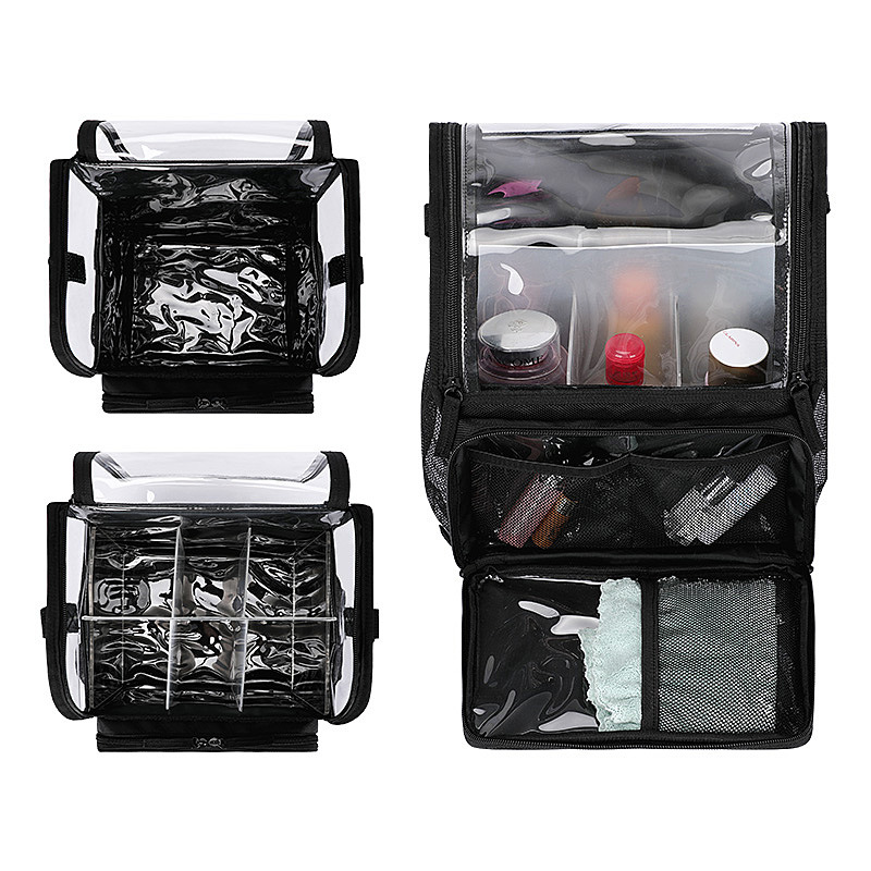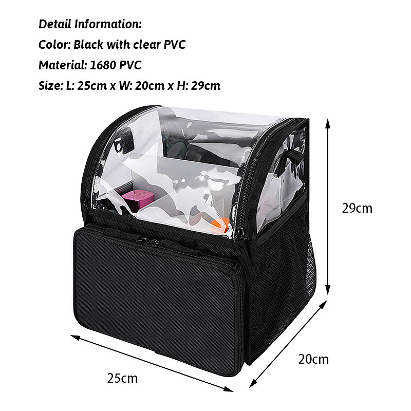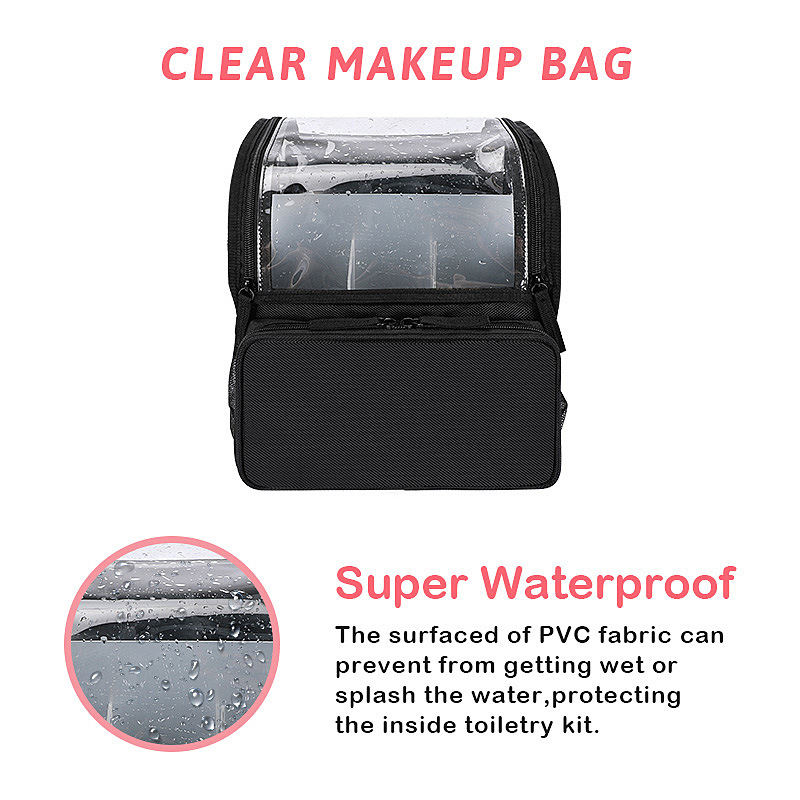 | プロダクション名 | 女性クリア化粧品バッグ二層メイクアップバッグカスタムプリントロゴ化粧品バッグ旅行用ケース |