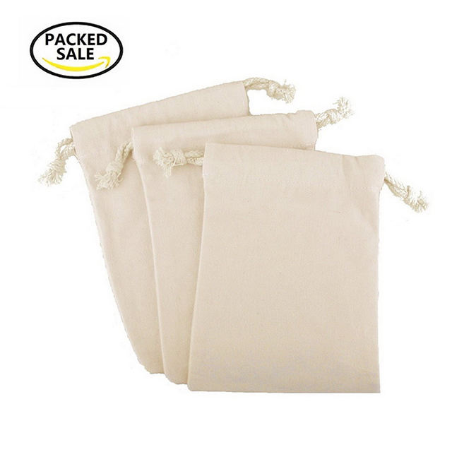ドローストリング付きコットン オーガニック モスリン プロデュース バッグ