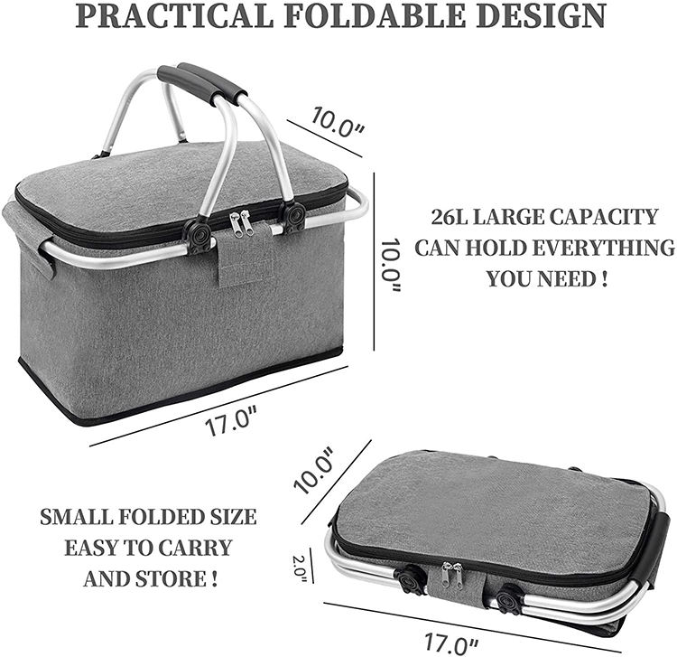 ホームページ / 製品 / クーラーバッグ&ランチバッグ / クーラーバッグ / 折りたたみ式デザイン ピクニック バスケット クーラー ランチ バッグ 断熱 食料品 ショッピング トートバッグ 特大 クーラー バスケット