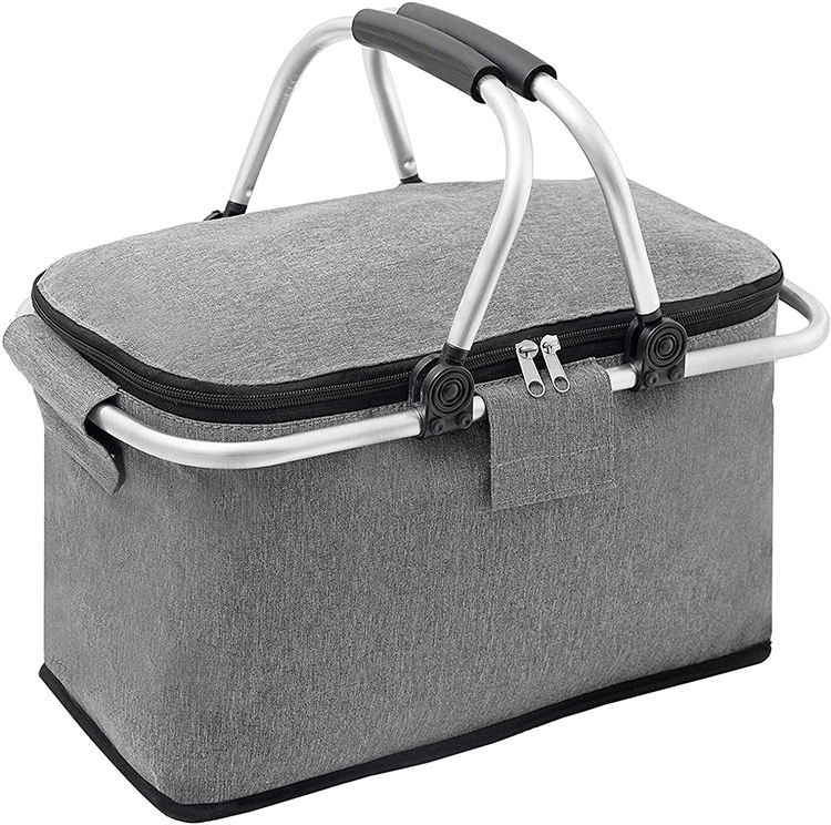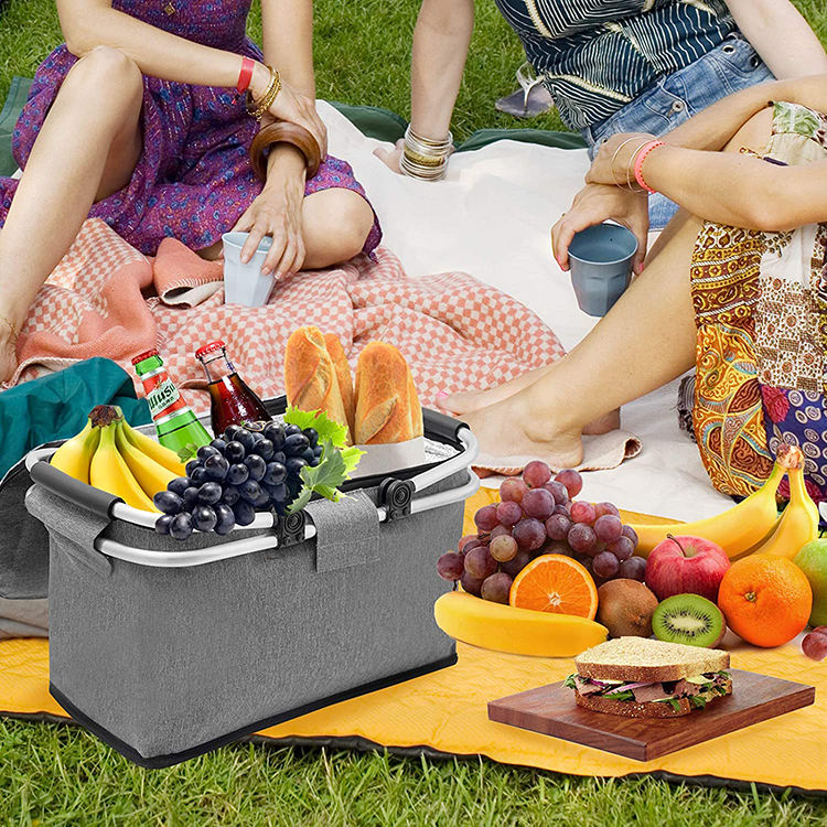 折りたたみ式ピクニッククーラーバスケット 昇華ランチバッグ アルミハンドル付き断熱フードデリバリーバッグ