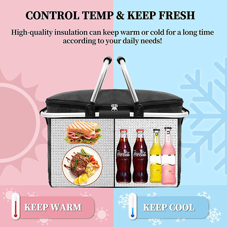 | 名前 | 折りたたみ式ピクニッククーラーバスケット 昇華ランチバッグ アルミハンドル付き断熱フードデリバリーバッグ | ||||||