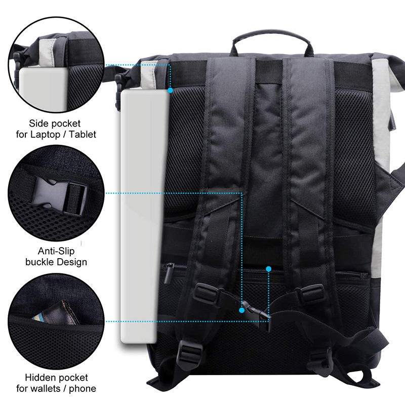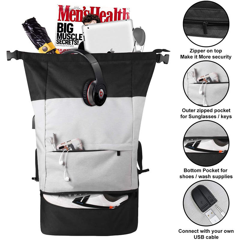 | 盗難防止ロールトップカジュアルスポーツバックパック靴コンパートメント付き大容量トラベルバッグ | ||