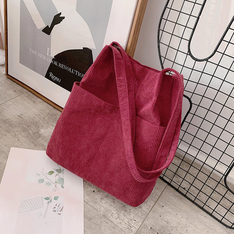| 自社ブランド コーデュロイ ショッピング バッグ大容量コーデュロイ トート バッグ空白ビーチ ショルダー バッグ | ||