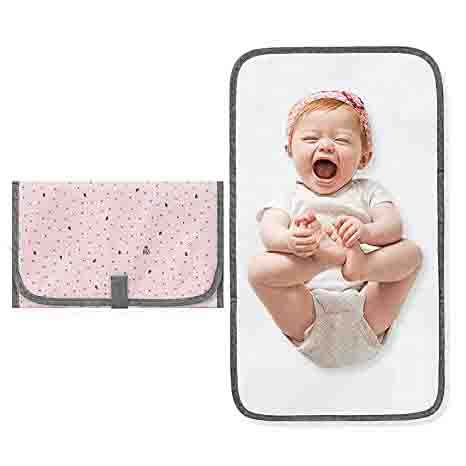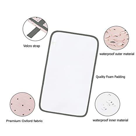 軽量花柄おむつクラッチストラップ付きママ幼児ベビーポータブル防水チェンジャーマットピンク