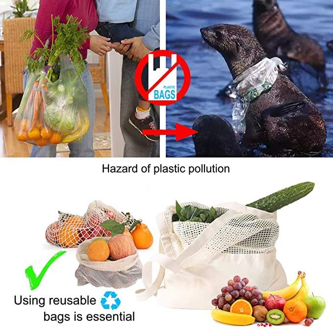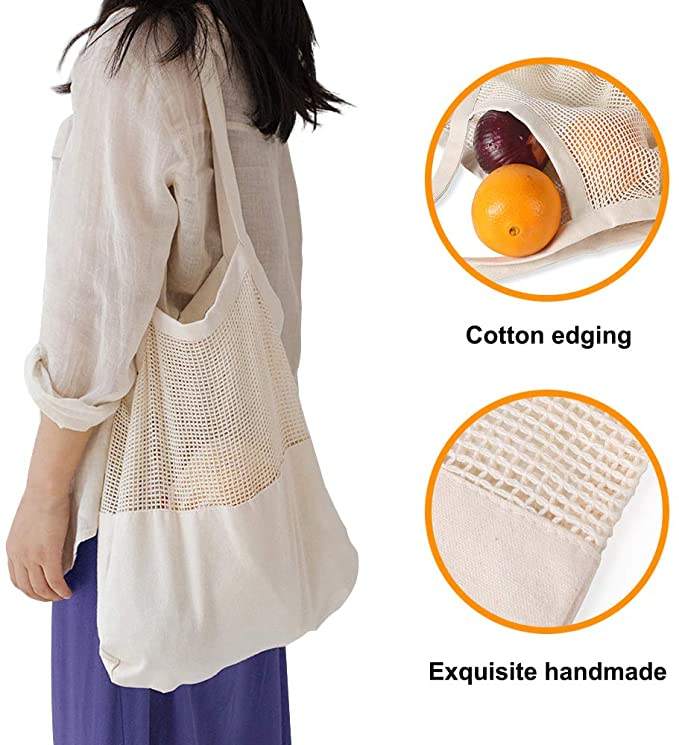 | ネットコットンストリングショッピングバッグ 再利用可能なコットンストリングバッグ ネットショッピングバッグ メッシュマーケットトートオーガナイザー | |