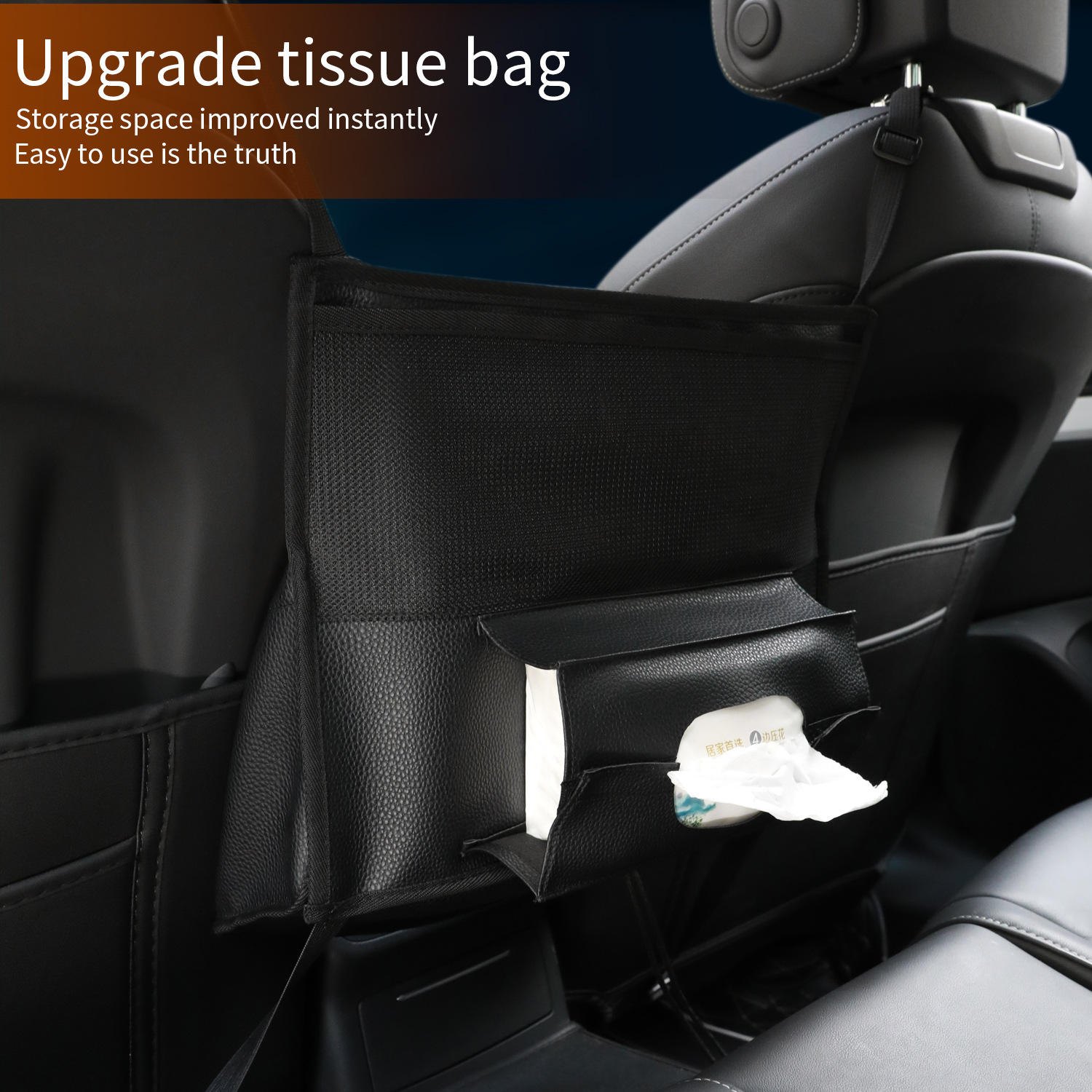 2つの座席の間の車の収納 レザーカーシート収納ネットバッグ 車の保護スクリーン分離収納ネット