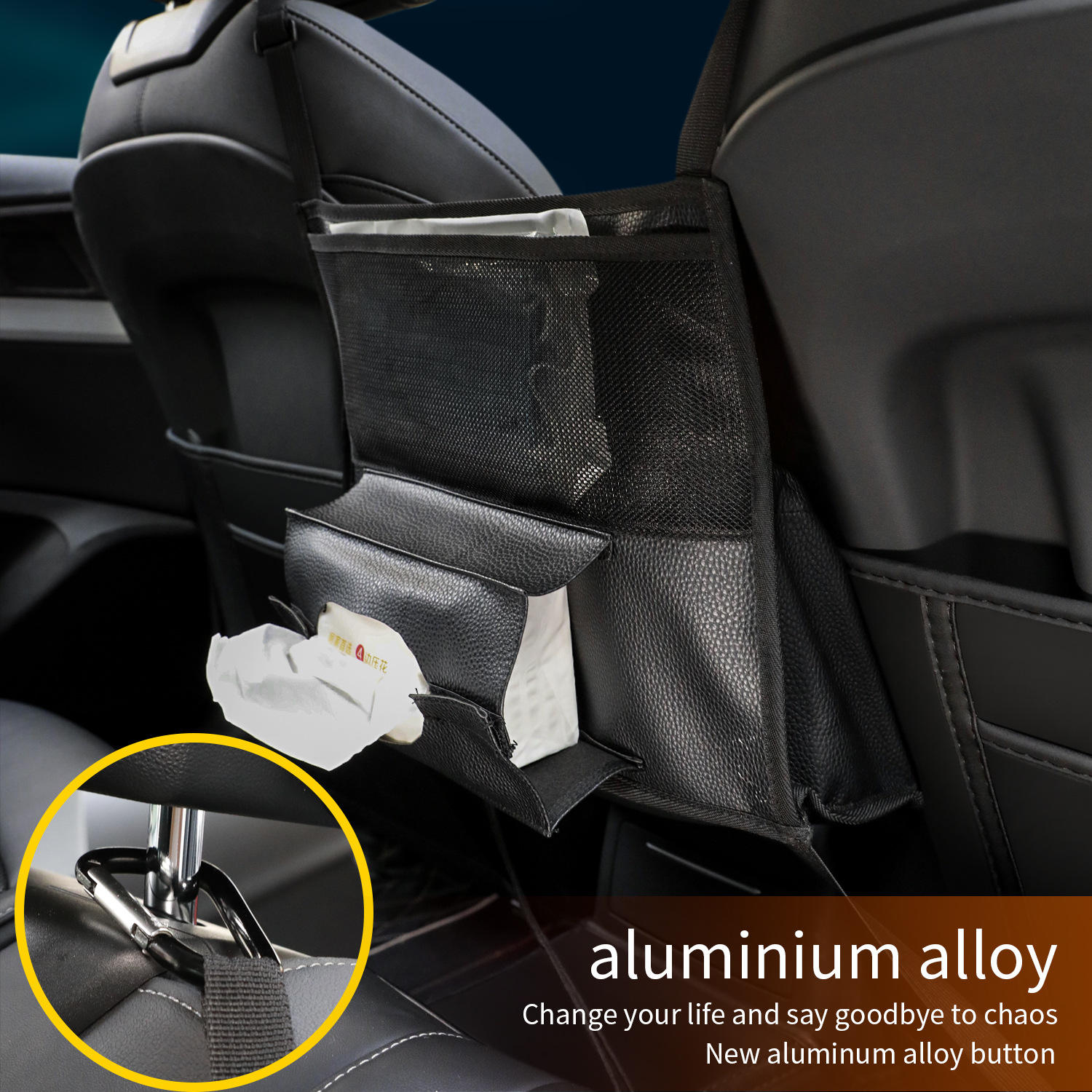 ホームページ / 製品 / オーガナイザーバッグ / カーオーガナイザー / 2つの座席の間の車の収納 レザーカーシート収納ネットバッグ 車の保護スクリーン分離収納ネット