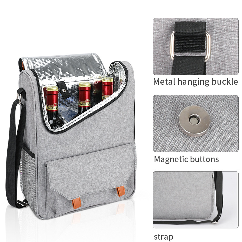 ホームページ / 製品 / クーラーバッグ&ランチバッグ / ワインバッグ / BSCI カスタム ワイン クーラー バッグ 4 個新しい屋外ピクニック ワンショルダー クロスボディ ワイン バッグ
